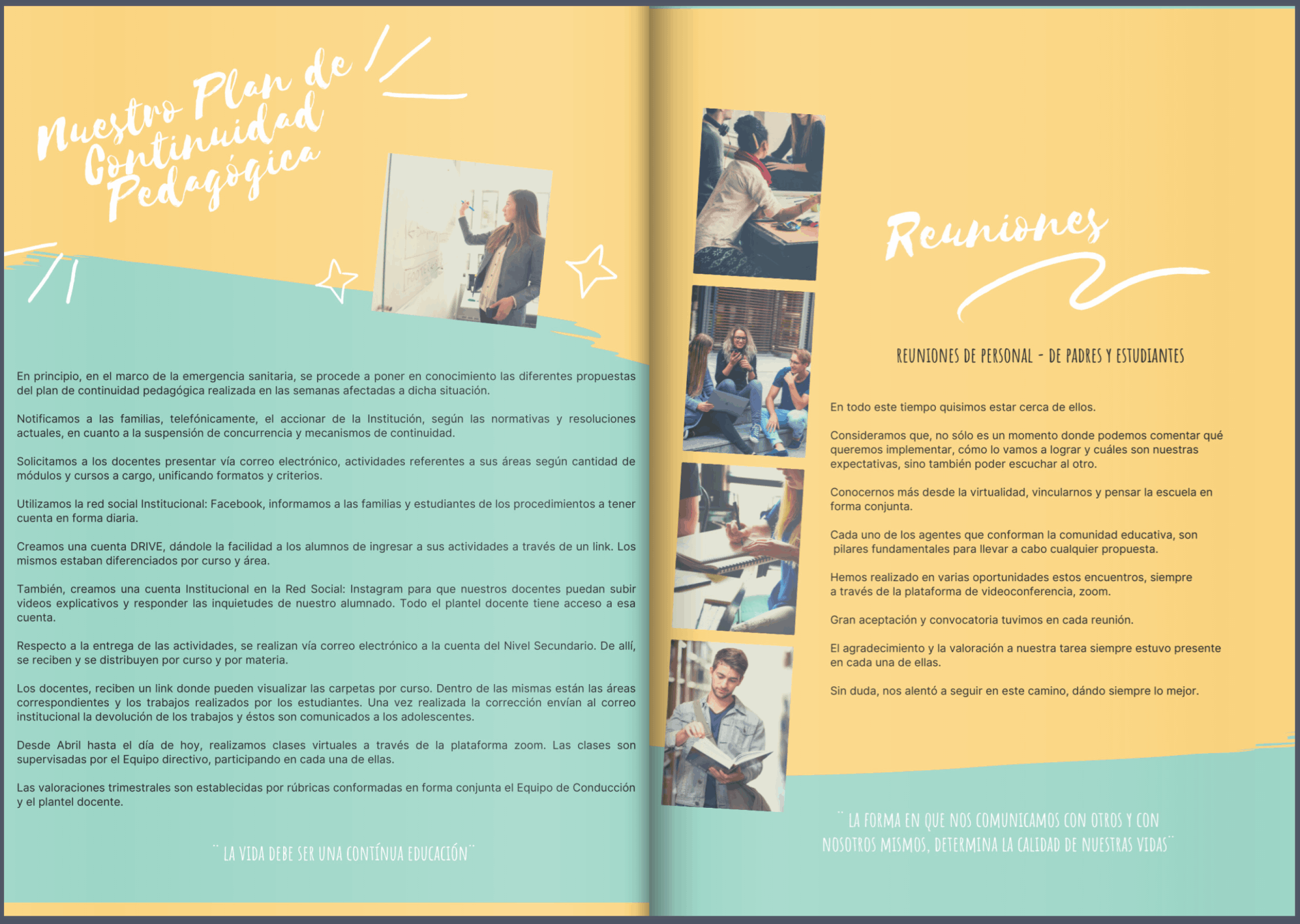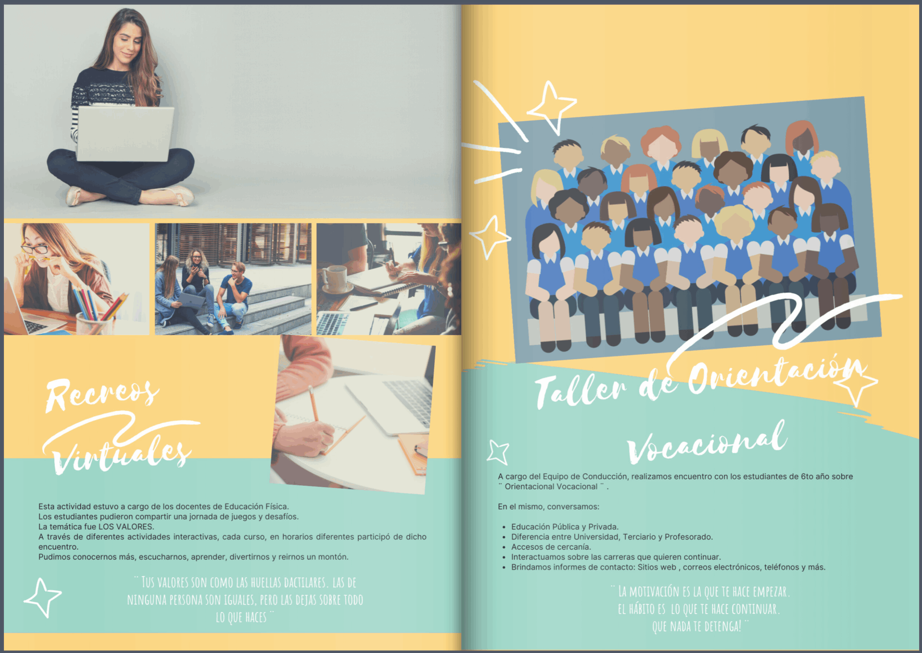 Se llevan adelante distintos Proyectos solidarios, participación en Olimpiadas en distintas disciplinas, concursos de Arte, corresponsalía de la bandera de la Paz, entre otros.
